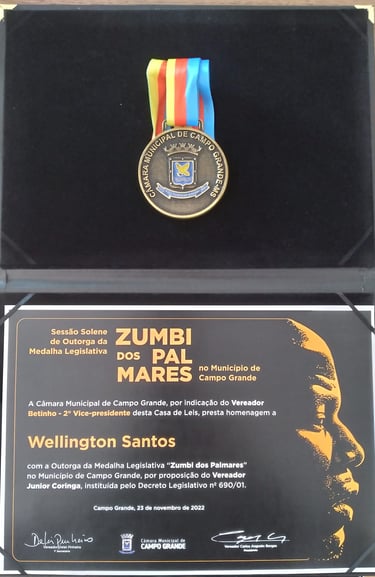 Medalha Zumbi dos Palmares, concedida pela Câmara Municipal de Campo Grande – MS.